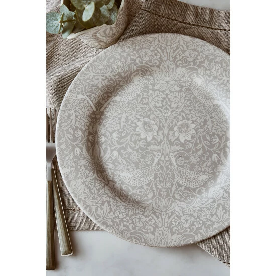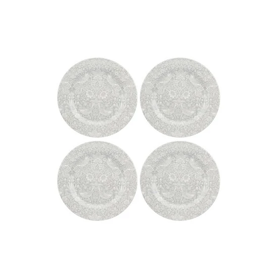 This Pure Morris set of 4 dinner plates from Spode feature the Strawberry Thief design in a soft grey colourway. Made in England, these dinner plates will add a touch of modern heritage to each meal time or dinner party.