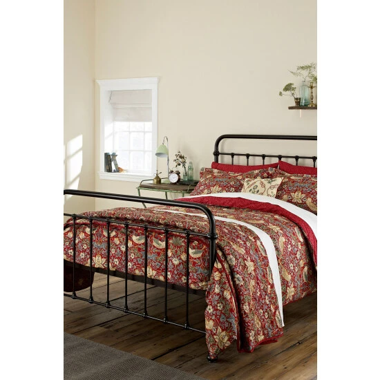Strawberry Thief is one of William Morris’ most famous designs. He was inspired to create the original fabric after watching thrushes stealing strawberries from the kitchen garden of his countryside home, Kelmscott Manor, in Oxfordshire. This enduringly elegant design has been recoloured in a striking crimson colourway and printed onto 300 thread count cotton percale, add the housewife pillowcase to complete your bed.