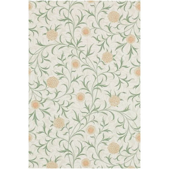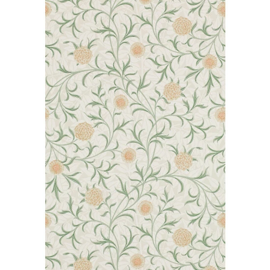 Delicately trailing leaves and marigold flowers meander over a background of paler leaves on this desirable wallpaper. The pattern originating from 1871 was taken from the Branch wallpaper designed in the same year.
