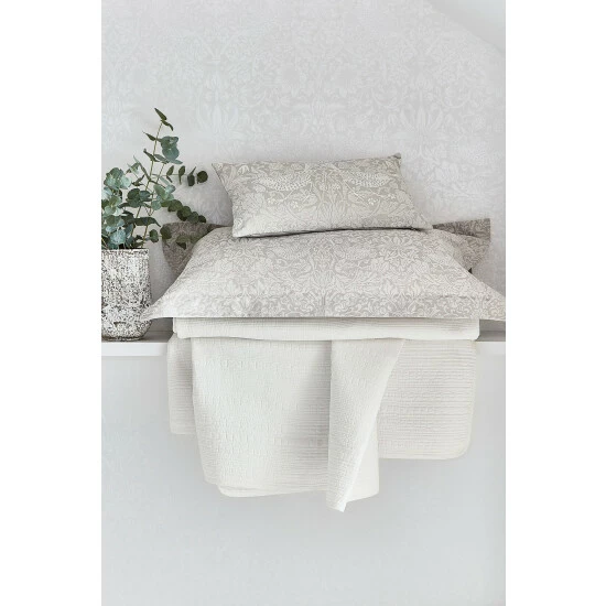 Originally a fabric designed by William Morris in 1883, Pure Strawberry Thief has been recreated in a contemporary monochromatic colourway whilst retaining the exquisite detail of the multicoloured original. The range includes a jacquard duvet cover and oxford pillowcase woven in a fine 300 thread count cotton, reversing to a coordinating plain 200 thread count percale.