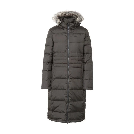 This jacket features an inner zip pocket a badge detail on sleeve, an adjustable zip-off hood with faux-fur trim, a two way front zipper and a longer length.