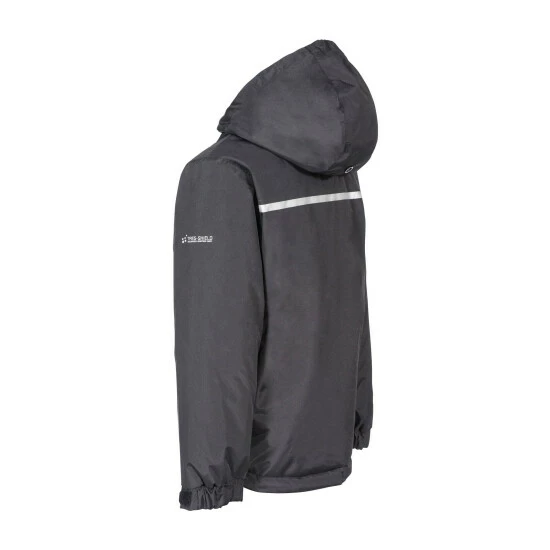 Their boys waterproof jacket Rudi, features Taped Seams, Reflective Stripe on Back, Two Zip Pockets, Contrast Front Zip, Detachable Stud-Off Hood, Drawcord at Hem, Elasticated Cuffs with Velcro Tab and Padding. Waterproof: 3000mm, Windproof.