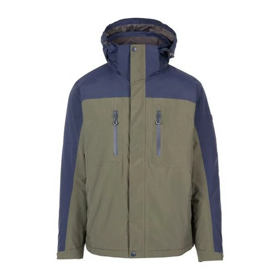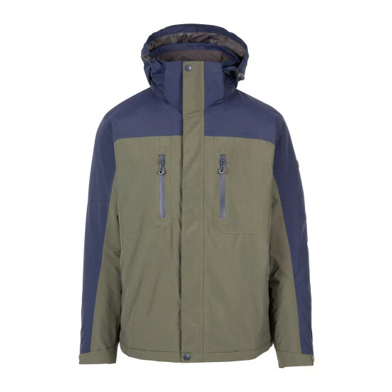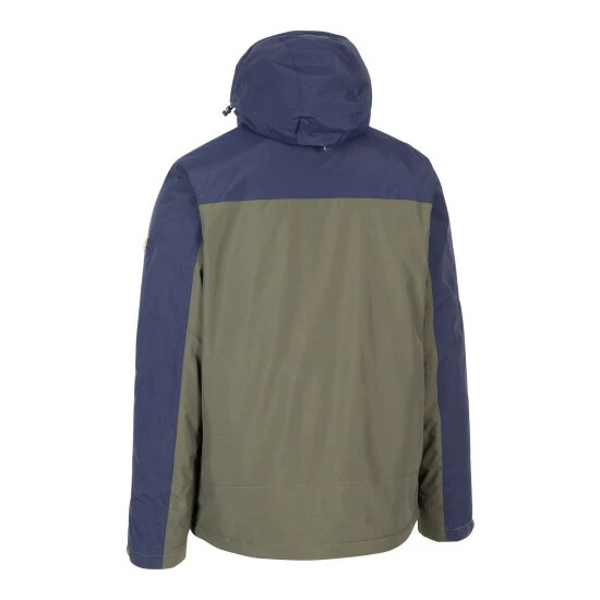 Our male rain jacket Murchan, features recycled outershell fabric, adjustable zip-off hood, padding, two water-repellent zip chest pockets, two lower zip pockets, adjustable cuffs, hem drawcord, chin guard and inner pocket. Waterproof: 3000mm, breathable: 3000mvp, taped seams windproof.