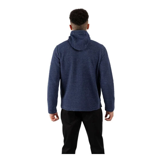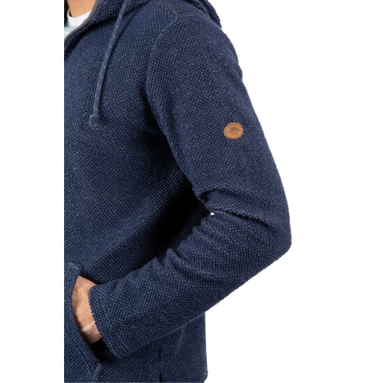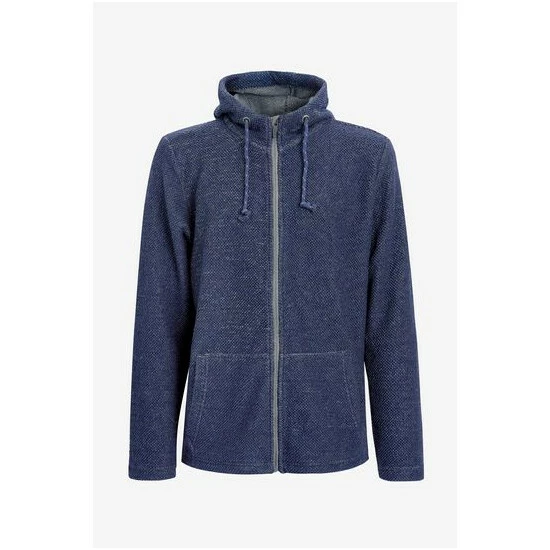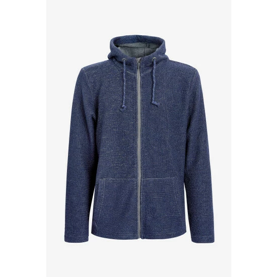 Made with textured knitted fabric, it features full front zip, two pockets, hood cord ties. Designed with hooded style.