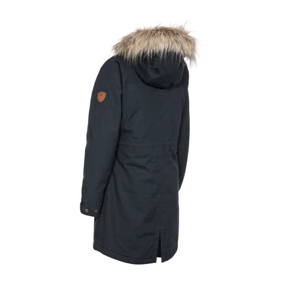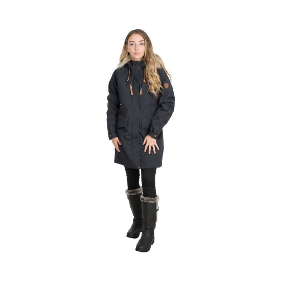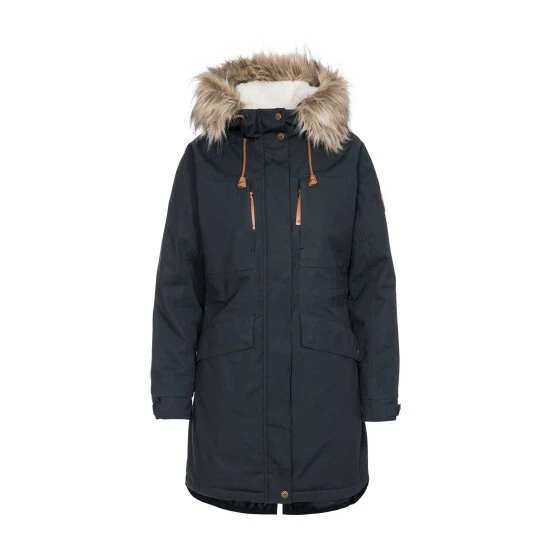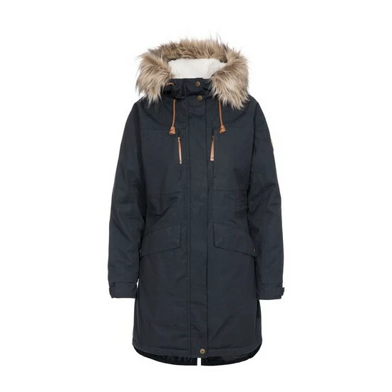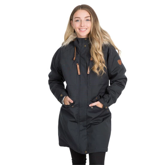 A waterproof and breathable jacket with grown-on hood, fur trim and four pockets.