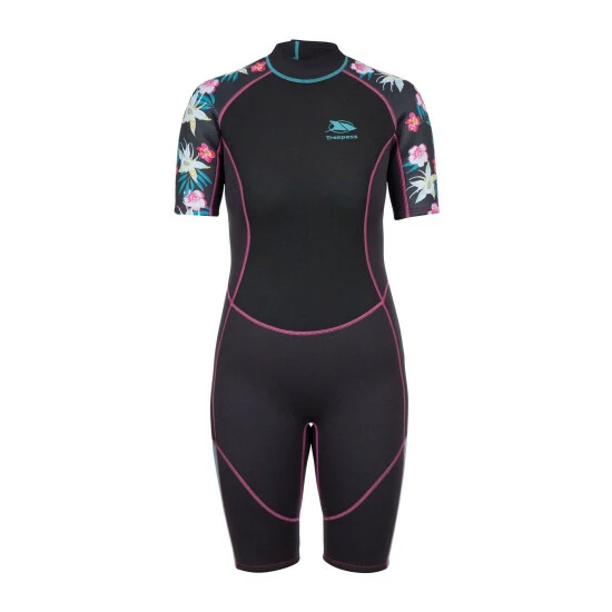 Features branded Trespass zipper tape, 3mm short wetsuit, flat lock seams, Trespass print on chest, printed pattern on sleeves, back zipper, Thickness: 3mm.