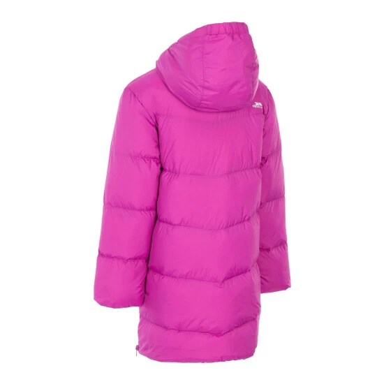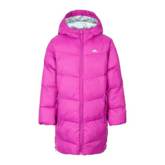 Their kid’s padded jacket Pleasing, features padding, grown on hood, printed lining, two zip pockets, and two side seam zips and water and wind-resistant fabric.