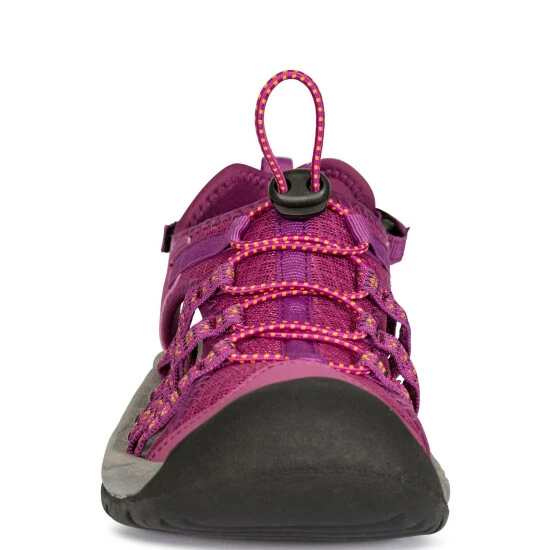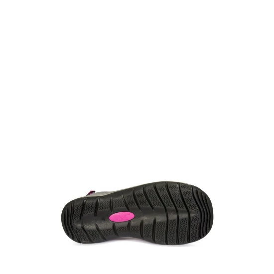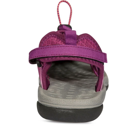 Hook and loop ankle strap, protective active sandals, adjustable pull cord, closed toe, cushioned and moulded footbed, durable traction outsole.