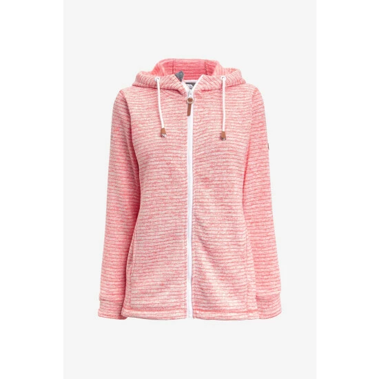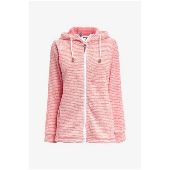 Marl fleece with a stripe and brushed back, designed with hooded style. It features full front zip, two pockets and contrast hood ties.