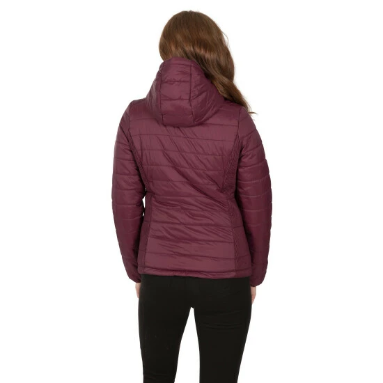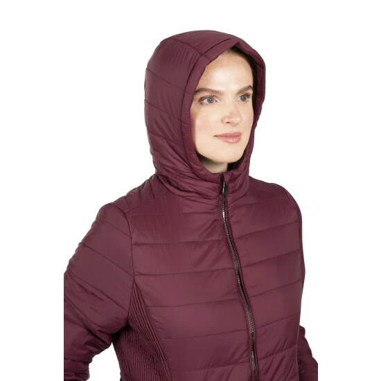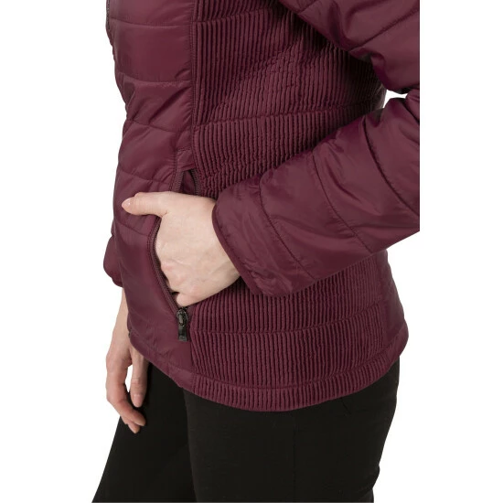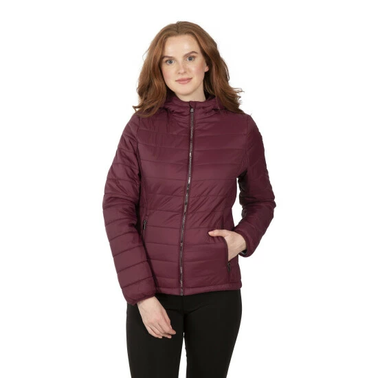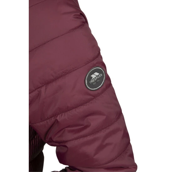 Trespass’ women’s padded jacket Valerie, features accordion stretch side panels, badge detail on sleeve, padding, faux fur lining, two zip pockets, grown on hood, CF zip with metallic finish, inner storm flap, ColdHeat® technology and matching binding at cuffs.