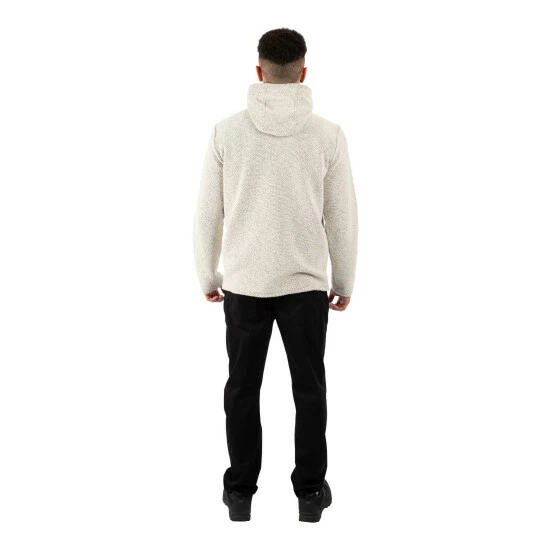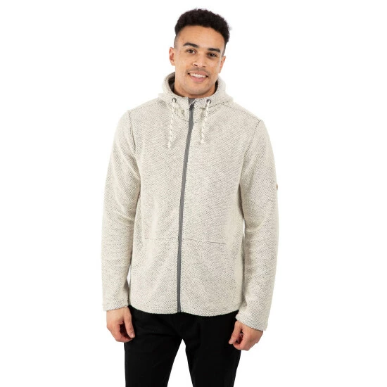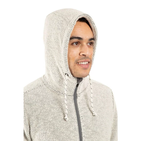 Made with textured knitted fabric designed with full front zip, hooded style. It features two pockets, and hood cord ties.